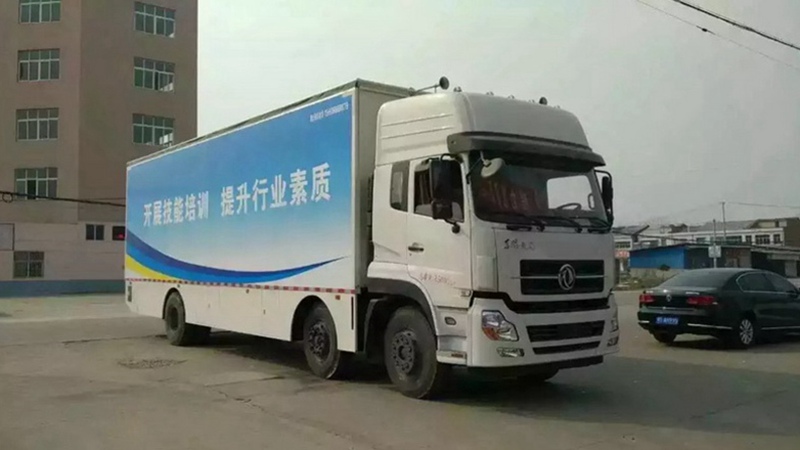 車廂舞臺部分為封閉式頂部封閉?筛鶕(jù)用戶要求選裝導(dǎo)流罩、車輛側(cè)面可選裝不帶噴涂及文字,選裝LED屏,選裝后部雙開門的車廂,后部可選裝不帶液壓升降尾板。隨底盤選裝高度不同的駕駛室,高頂駕駛室頂部氣喇叭為選裝件。側(cè)防護(hù)采用裙板結(jié)構(gòu),車輛后部為液壓升降圍板,與后防相干涉,故可豁免。 前懸/軸距/后懸對應(yīng)關(guān)系為(mm):1460/1950 5350/3310,1500/1850 5450/3270,該車安裝具有衛(wèi)星定位功能的行使記錄儀。ABS型號:4460046440,生產(chǎn)廠家:威伯科汽車控制系統(tǒng)(中國)有限公司。