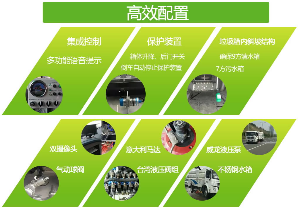 東風輕卡駕駛室,朝柴130馬力,萬里揚5擋變速箱,1.8T前橋,3.5噸后橋,180雙層大梁,斷氣剎,7.00R16鋼絲胎,空調(diào),中控鎖,電動門窗,遙控鑰匙,多功能方向盤。 東風輕卡駕駛室,玉柴140馬力,萬里揚6擋變速箱,1.8T前橋,3.5T后橋(德納),190雙層大梁,斷氣剎,7.00R16鋼絲胎,空調(diào),中控鎖,遙控鑰匙,排氣制動多功能方向盤。 2、上裝配置: 4個中置掃盤,帶三擋調(diào)速,江鈴副發(fā)動機,大力馬達,施耐德控制開關(guān),臺灣電磁閥組,免維護分離式離合器,北玻臺信免維護風機,不銹鋼水箱,不銹鋼垃圾箱,尾部LED箭頭燈,手動泵應急系統(tǒng),刷臂轉(zhuǎn)動機構(gòu)使用高新耐磨工程隔套,免打黃油,精密冷彎無縫液壓油管。 可選配置:前沖、后灑、噴霧、自潔卷盤、作業(yè)監(jiān)控系統(tǒng)、輔助吸管裝置、推雪鏟等。