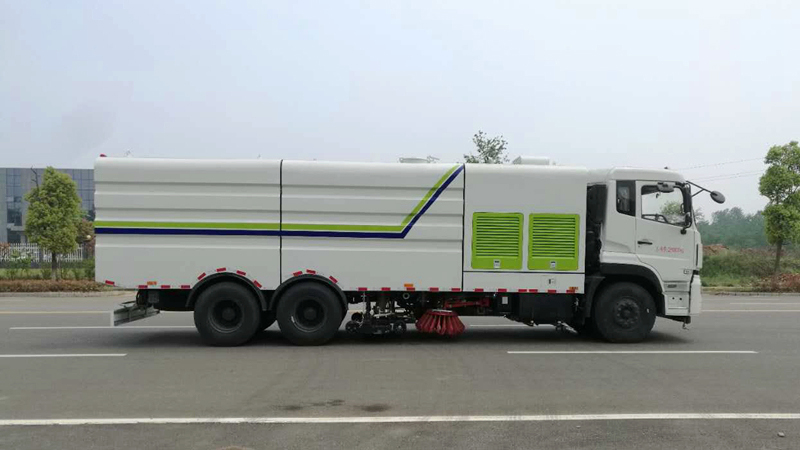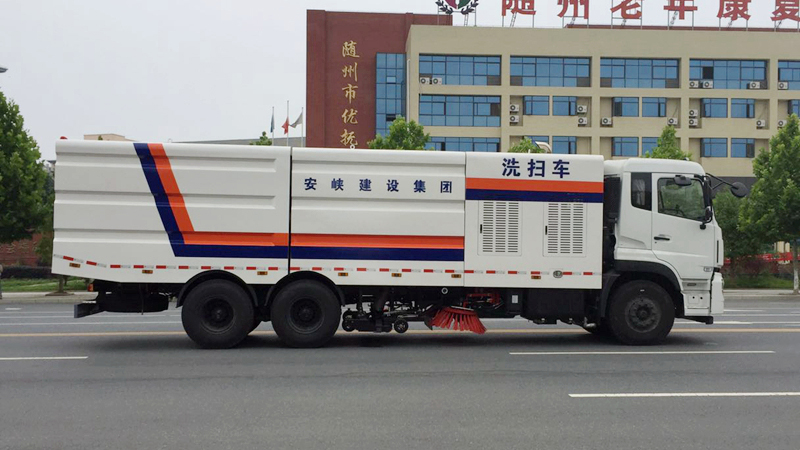 8)采用先掃,后沖刷,再吸收的工作方式,能將垃圾及污水一次清掃、沖刷、吸收干凈。路面作業(yè)后無塵土,無積水;